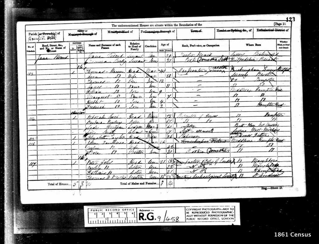 1861 Census Schedule # 113