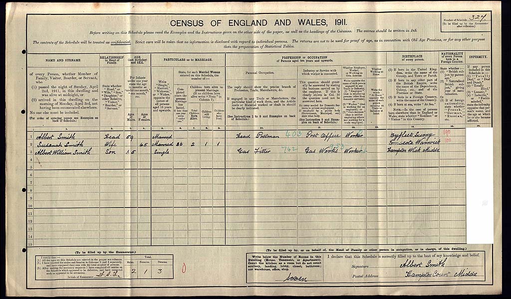 1911 Census Schedule # 327